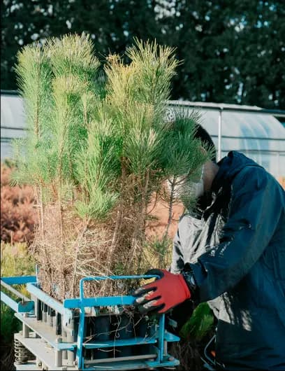 森林整備用の針葉樹 (花粉の少ないスギ・ヒノキなど)や広葉樹(クヌギ、コナラなど)の生産・販売をしています。